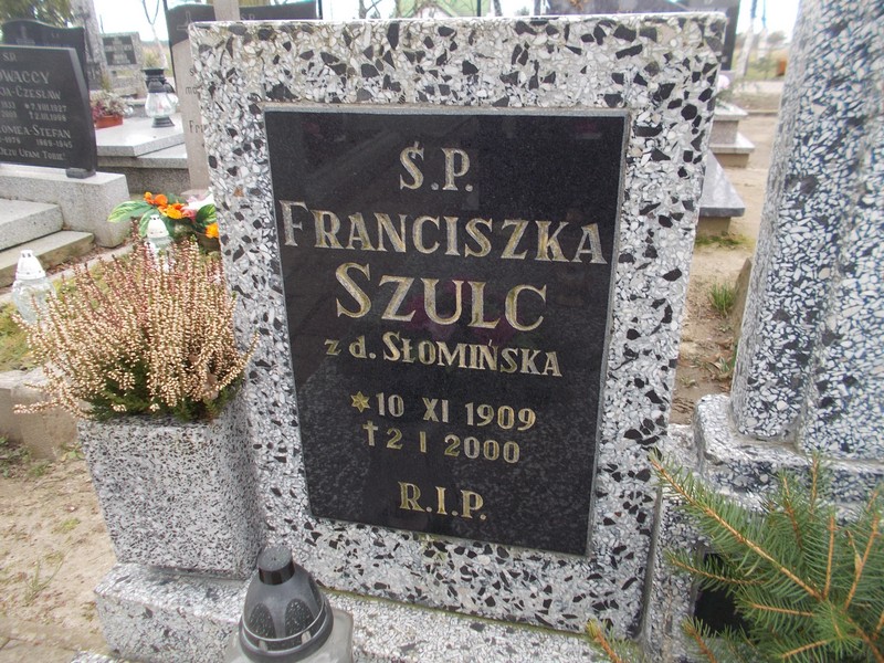 | szulc franciszka | 1909-11-10 | 2000-01-02 | 91 |