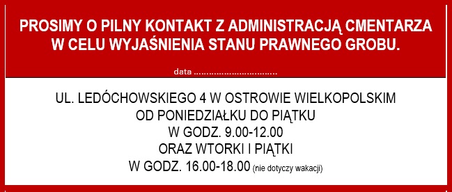 Osoby, które znajdą taką informację na grobie swoich bliskich, proszone są o zgłoszenie się do biura parafialnego Konkatedry w godzinach urzędowania.