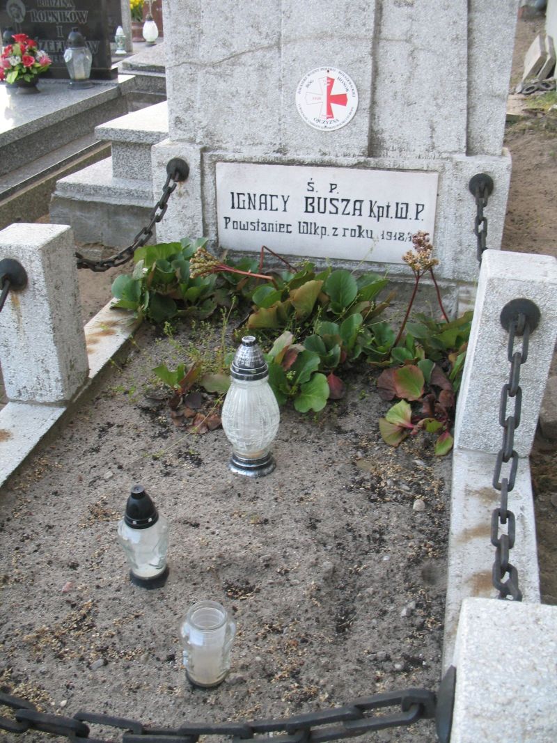 Busza Ignacy Powstaniec Wielkopolski Busza Ignacy (1880-1920) – powstaniec wielkopolski, działacz ruchu niepodległościowego na ziemi rawickiej, nauczyciel. Urodził się 31 stycznia 1880 roku w Pogorzeli niedaleko Koźmina, jako syn rolnika Onufrego i Marianny z Andrzejewskich. Ukończył Seminarium Nauczycielskie Męskie w Kcyni. W 1900 roku złożył państwowy egzamin nauczycielski. Pracował jako nauczyciel w szkołach powszechnych w Głogowej w powiecie krotoszyńskim, następnie w Trzemesznie, od 1908 roku w Rogożewie koło Jutrosina. Tam zamieszkał z żoną, Marią Szulczyńską. W maju 1915 roku został zmobilizowany do służby w armii niemieckiej, w 50. regimencie piechoty. W listopadzie 1918 roku, przeniesiony do rezerwy w stopniu sierżanta, powrócił do Rogożewa. Natychmiast zaangażował się w działalność polskiego ruchu niepodległościowego na ziemi rawickiej. Współpracował z Powiatową Radą Ludową, organizował pierwsze odziały Straży Ludowej, pełniąc od 8 stycznia 1919 roku funkcję komendanta powiatowego tej formacji. Utworzył 1 Pułk Piechoty na Powiat Rawicki i dowodził tym oddziałem w pierwszym etapie walk powstańczych. Brał udział w dwóch bitwach o Rawicz na początku lutego 1919 roku, z grupą powstańców tymczasowo opanował Sarnowę. Po zakończeniu działań powstańczych na froncie południowym otrzymał awans na stopień podporucznika i został dowódcą I batalionu 11 Pułku Strzelców Wielkopolskich. Pełnił dalszą służbę w Krotoszynie i Skalmierzycach. Z oddziałami Wojska Polskiego wkroczył 17 stycznia 1920 roku do Rawicza, przyznanego stronie polskiej na mocy postanowień traktatu wersalskiego. W kolejnych miesiącach brał udział w wojnie polsko-bolszewickiej jako dowódca kompanii wchodzącej w skład 69 pułku piechoty. Walczył na linii Niemna, w rejonie Lidy i Wilna na Kresach, następnie w słynnej „bitwie warszawskiej”. W trakcie polskiej kontrofensywy na Mazowszu został śmiertelnie ranny pod Myszyńcem i zmarł 27 sierpnia 1920 roku w szpitalu polowym w Ostrołęce. Pośmiertnie awansowany do stopnia kapitana, odznaczony Orderem Virtuti Militari V Klasy oraz Krzyżem Niepodległości z Mieczami. Po ekshumacji z cmentarza w Ostrołęce został pochowany w Rawiczu. Jest uznawany za nieformalnego przywódcę powstania wielkopolskiego na ziemi rawickiej. Patron ulic w Rawiczu, Miejskiej Górce i Pogorzeli. |