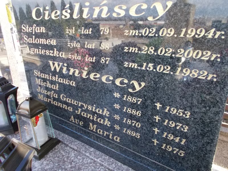 | cieślińska agnieszka | 1895-01-21 | 1982-02-15 | 87 |
