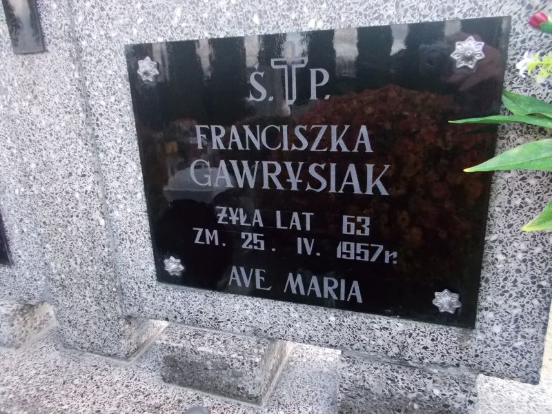 | gawrysiak franciszka | 1894-00-00 | 1957-04-25 | 63 |